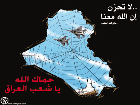 فهل يكون ذلك بتدمير العراق ... اذا لماذا تحرروه ... انتم تدعون انكم تحرروه ليتخلص من نظام مجرم قد دمر العراق ... فهل يكون تحرير العراق بتدميره على يد القوات الامريكية الكافرة ... اين عقولكم ... ولكن رب العزة وخالق الكون قد وصف حال هؤلاء الذين يعطون الولاء للكفرة المحتلين ... اذ ان هؤلاء الذين يسمون انفسهم عرب عندما يواجهون العراقيين او الفلسطينيين يقولون لهم _ نحن معكم _ وعندما يواجهون اسيادهم الامريكان يقولون لهم _ نحن كنا نستهزا بهم ونحن بجانبكم يا اسيادنا _ ولقد صور القران الكريم حالهم حيث قال عز وجل