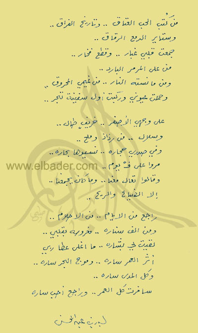 وهذا هو البدر دائما يتحفنا وليس غريب عليه وهو يقول في قصيدة له
